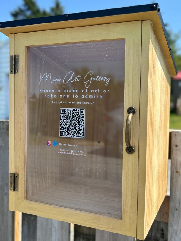 The Mini Art Gallery is a creative, outdoor public art box — much like a little free library — designed to inspire connection, reflection, and self-expression in our local community.
